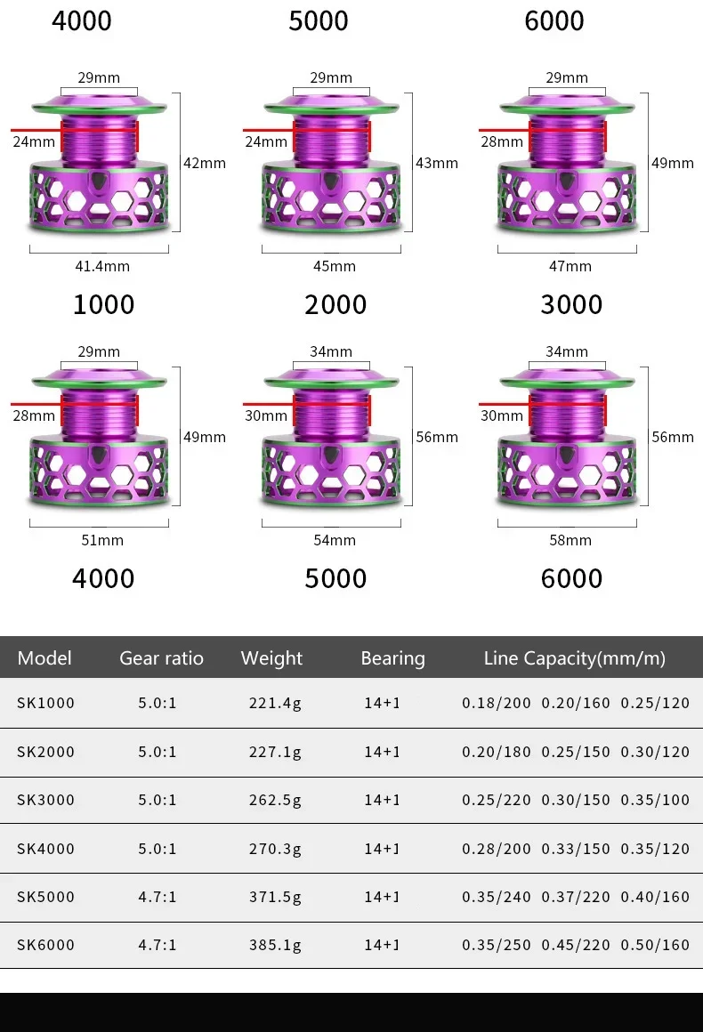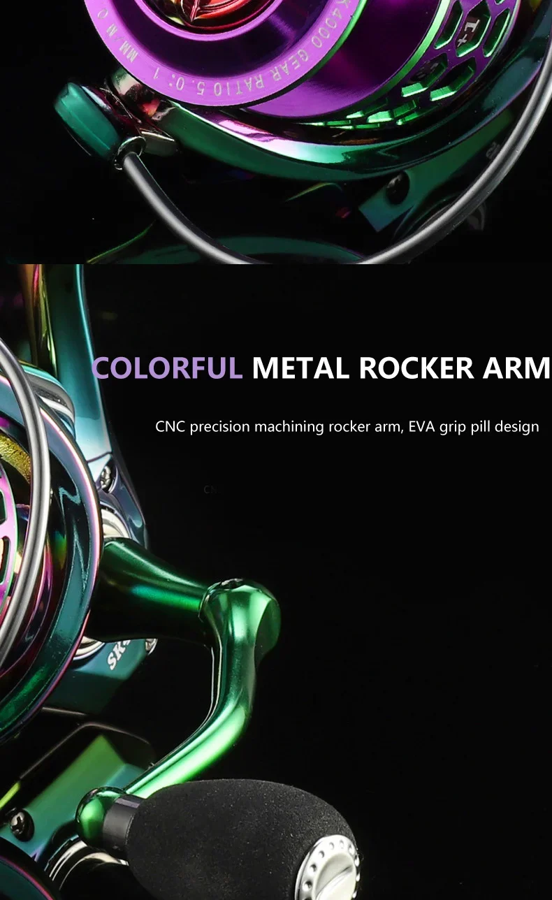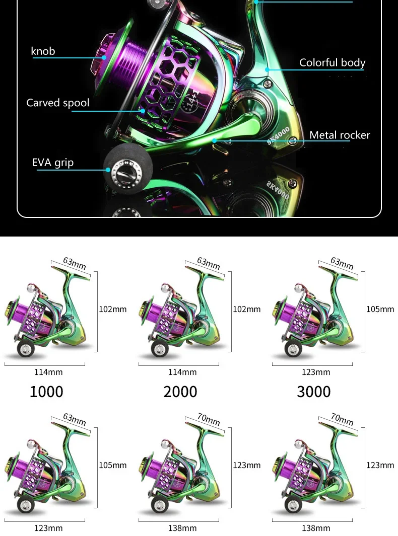 SK1000-6000 14+1BB Spinning Fishing Reel 5.0:1 High Speed Ratio EVA Grip Max Drag 8 Kg Handle Right/Left Carp Fishing Reel